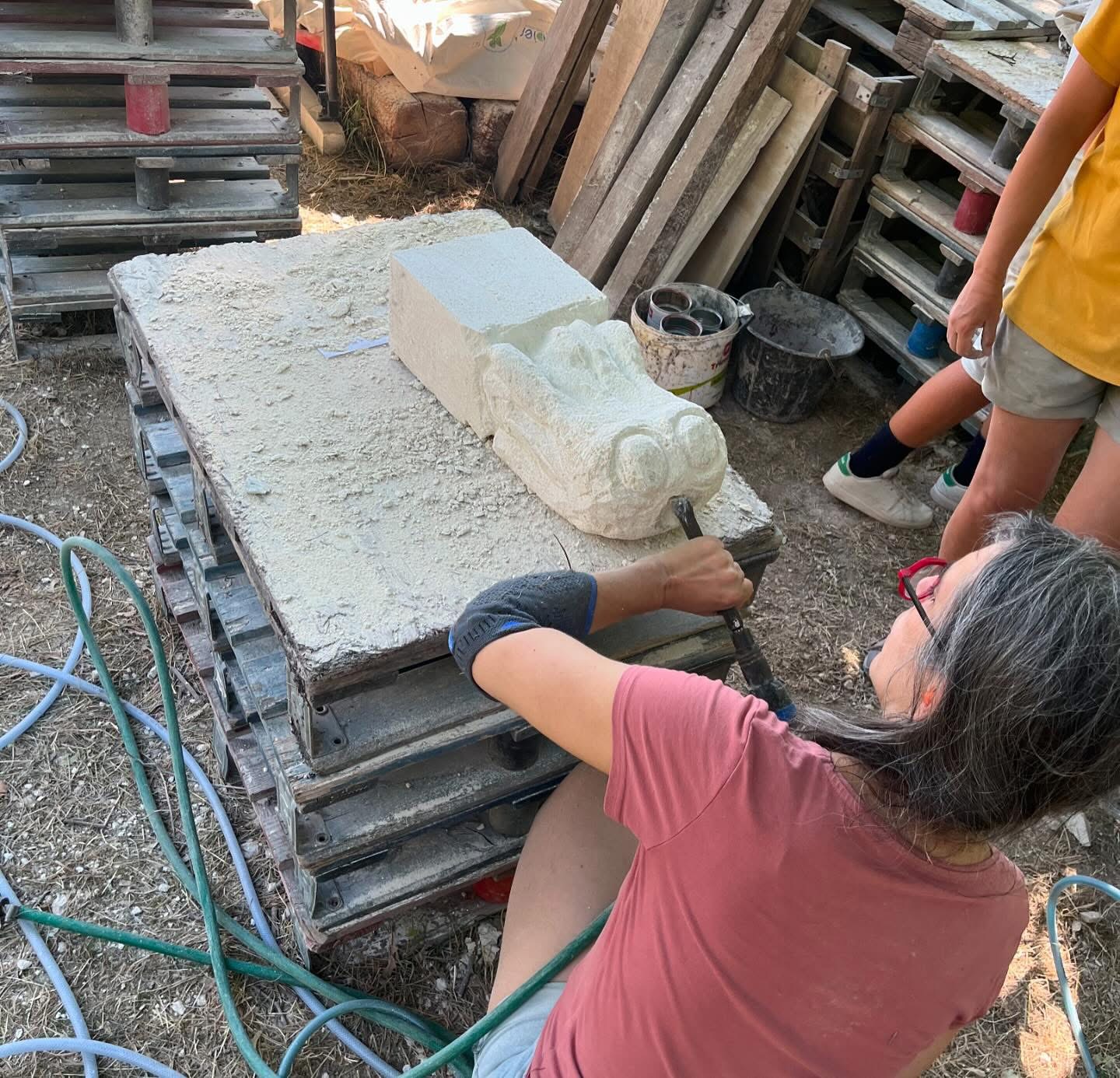- initiation et création artistique à travers la sculpture sur pierre et la taille de pierre.